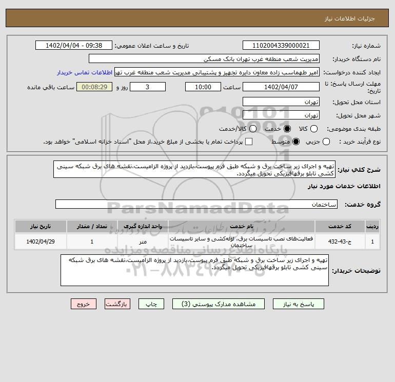 نام دستگاه خریدار:مدیریت شعب منطقه غرب تهران بانک مسکن