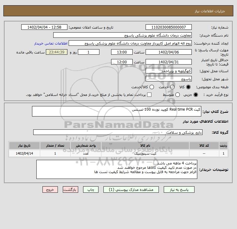 نام دستگاه خریدار:معاونت درمان دانشگاه علوم پزشکی یاسوج