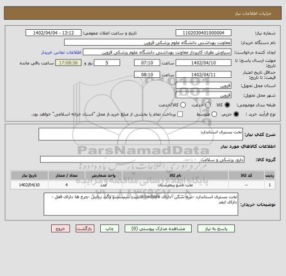 | 1 | -- | تخت تاشو بیمارستان | عدد | 4 | 1402/04/10 |