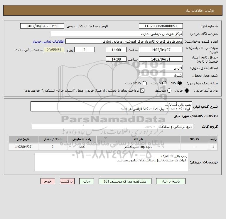نام دستگاه خریدار:مرکز اموزشی درمانی نمازی
