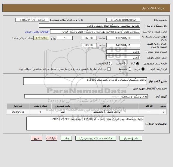 نام دستگاه خریدار:معاونت بهداشتی دانشگاه علوم پزشکی قزوین