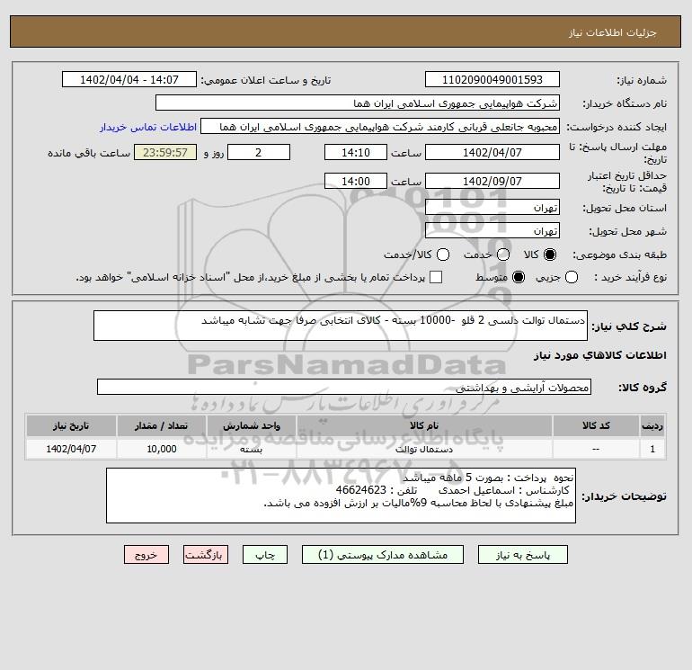 نام دستگاه خریدار:شرکت هواپیمایی جمهوری اسلامی ایران هما