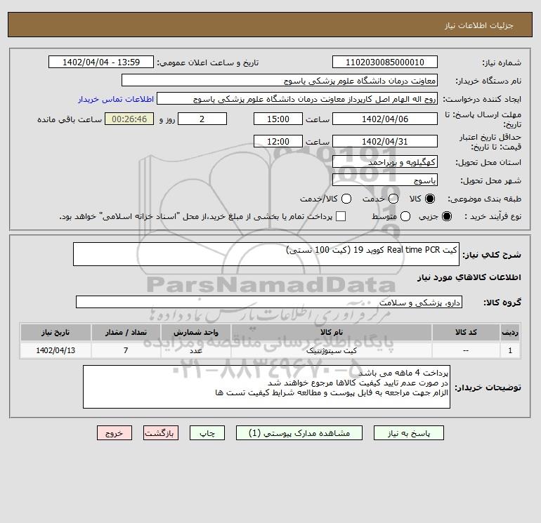 نام دستگاه خریدار:معاونت درمان دانشگاه علوم پزشکی یاسوج