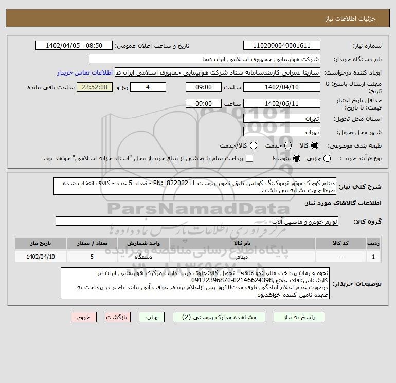 نام دستگاه خریدار:شرکت هواپیمایی جمهوری اسلامی ایران هما