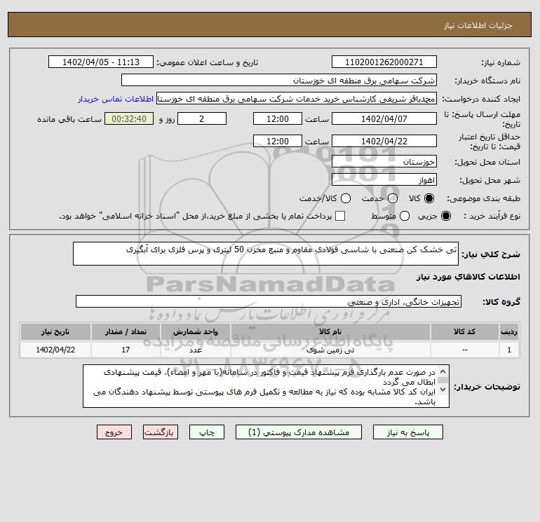 نام دستگاه خریدار:شرکت سهامی برق منطقه ای خوزستان