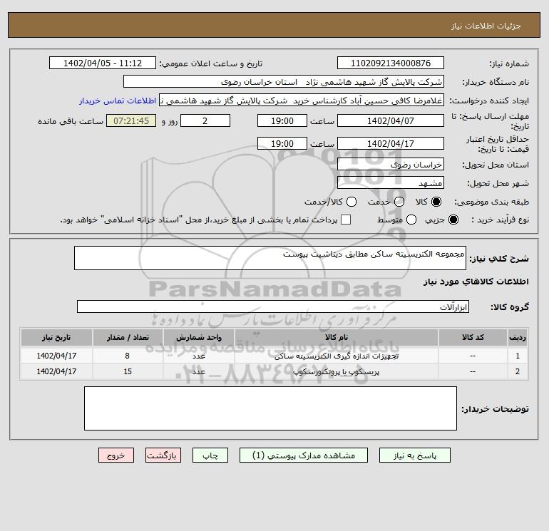 نام دستگاه خریدار:شرکت پالایش گاز شهید هاشمی نژاد استان خراسان رضوی