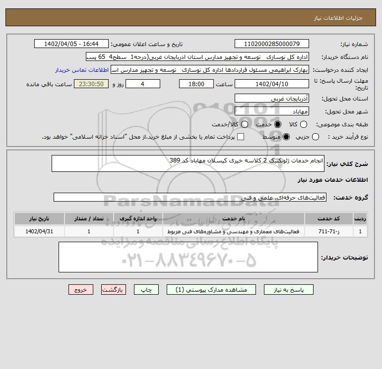 شرح کلی نیاز: انجام خدمات ژئوتکنیک 2 کلاسه خیری کیسلان مهاباد کد 389