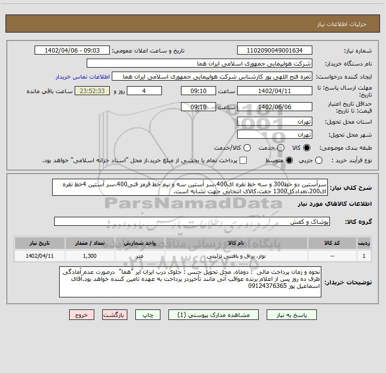نام دستگاه خریدار:شرکت هواپیمایی جمهوری اسلامی ایران هما