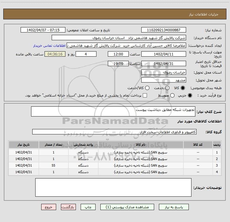 نام دستگاه خریدار:شرکت پالایش گاز شهید هاشمی نژاد استان خراسان رضوی
