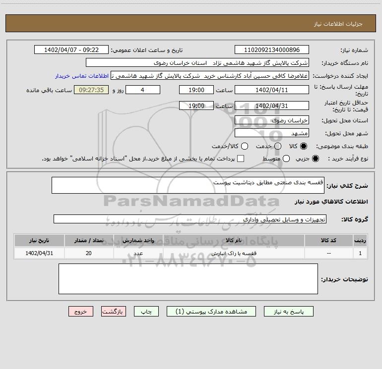 نام دستگاه خریدار:شرکت پالایش گاز شهید هاشمی نژاد استان خراسان رضوی