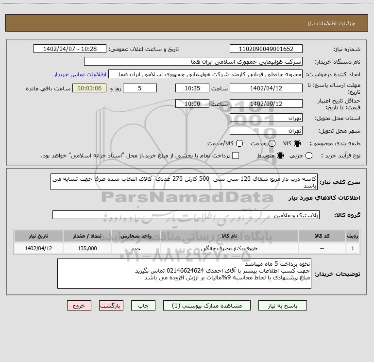 نام دستگاه خریدار:شرکت هواپیمایی جمهوری اسلامی ایران هما