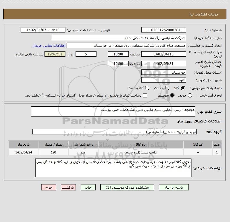 نام دستگاه خریدار:شرکت سهامی برق منطقه ای خوزستان