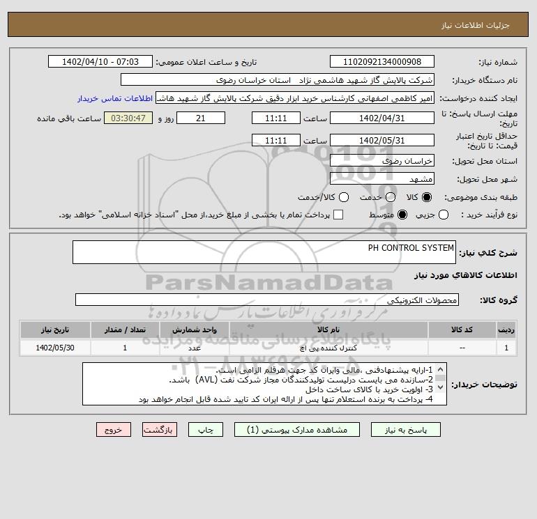 | 1 | -- | کنترل کننده پی اچ | عدد | 1 | 1402/05/30 |