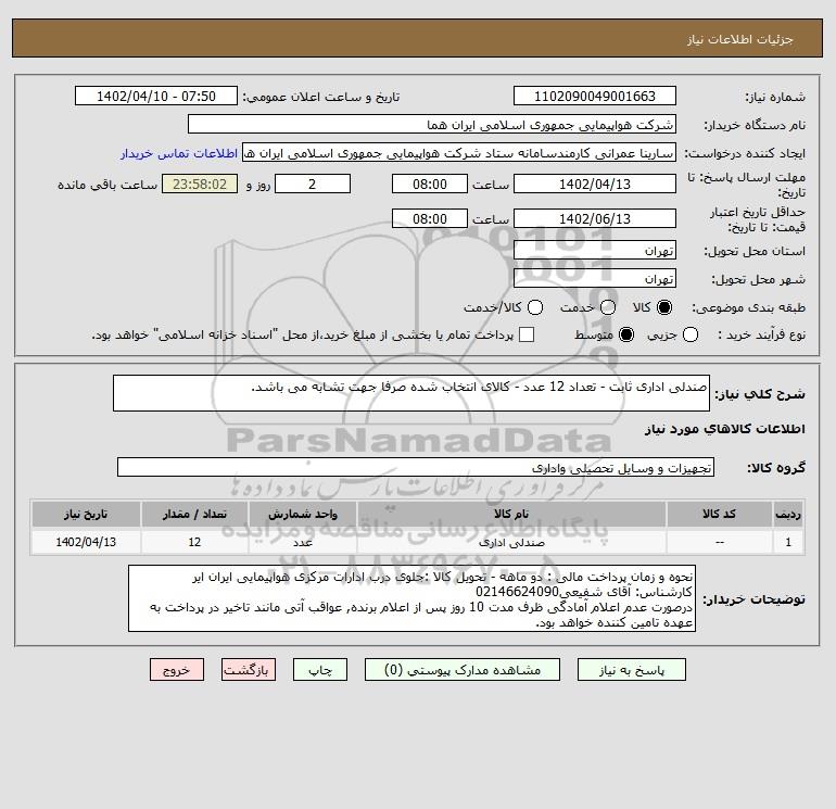 | 1 | -- | صندلی اداری | عدد | 12 | 1402/04/13 |