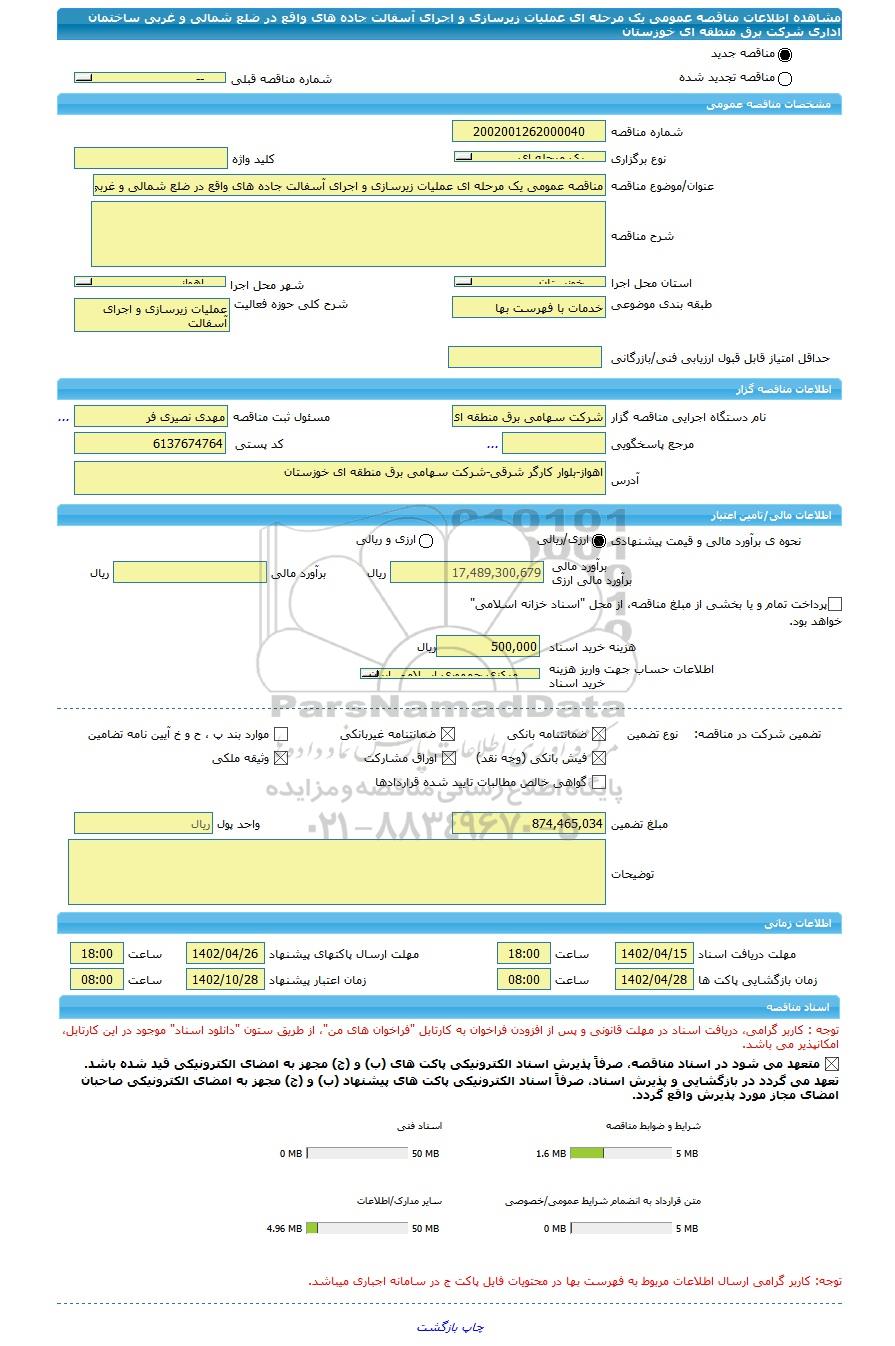 | مبلغ تضمین | 874,465,034 | واحد پول | ریال |