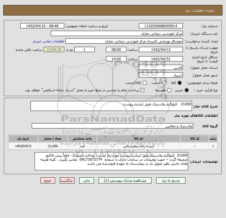 نام دستگاه خریدار:مرکز اموزشی درمانی نمازی
