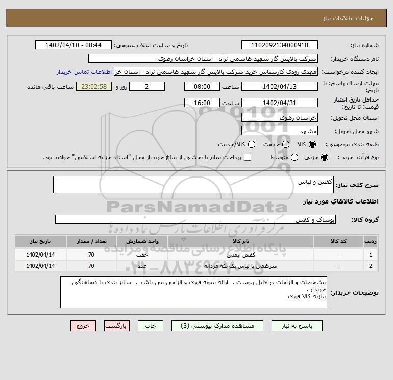نام دستگاه خریدار:شرکت پالایش گاز شهید هاشمی نژاد استان خراسان رضوی