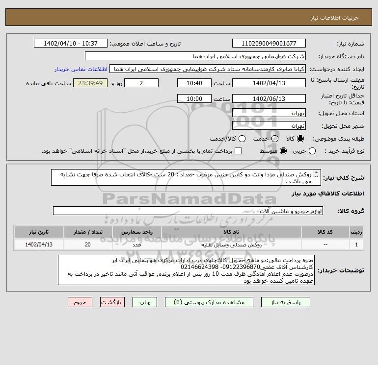 نام دستگاه خریدار:شرکت هواپیمایی جمهوری اسلامی ایران هما