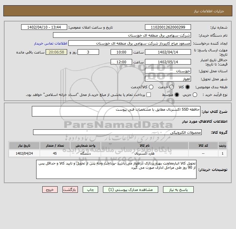 نام دستگاه خریدار:شرکت سهامی برق منطقه ای خوزستان