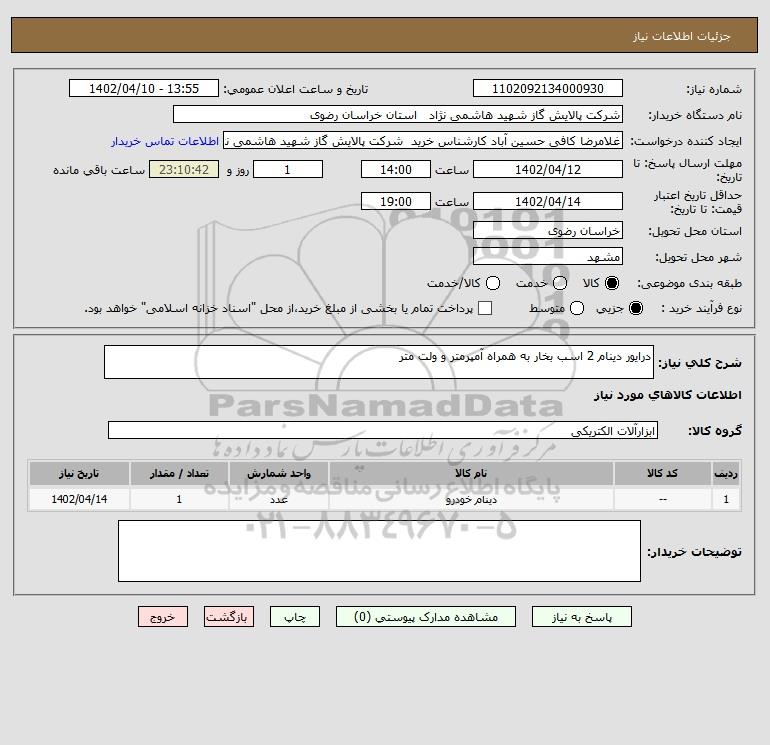 شرح کلی نیاز: درایور دینام 2 اسب بخار به همراه آمپرمتر و ولت متر