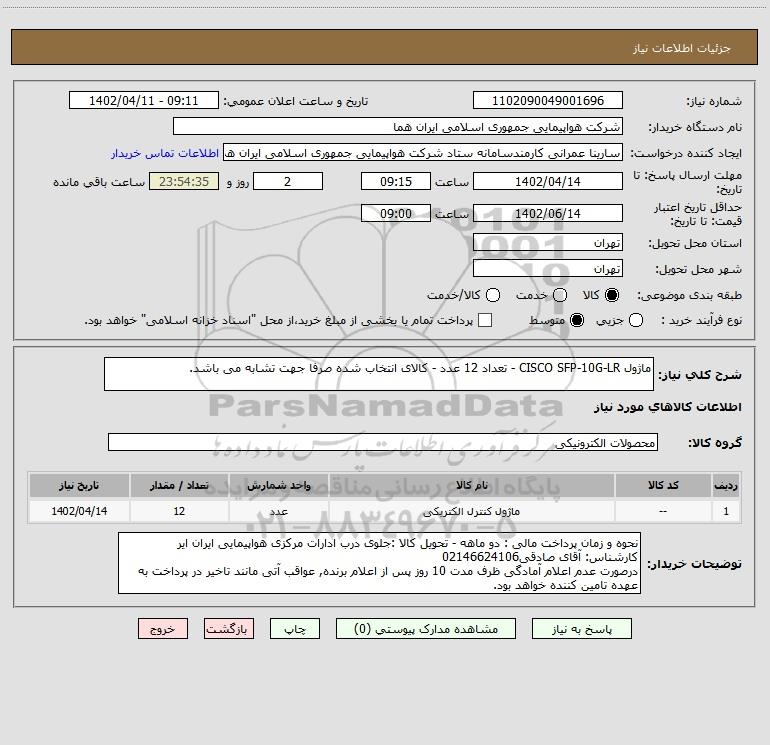 نام دستگاه خریدار:شرکت هواپیمایی جمهوری اسلامی ایران هما