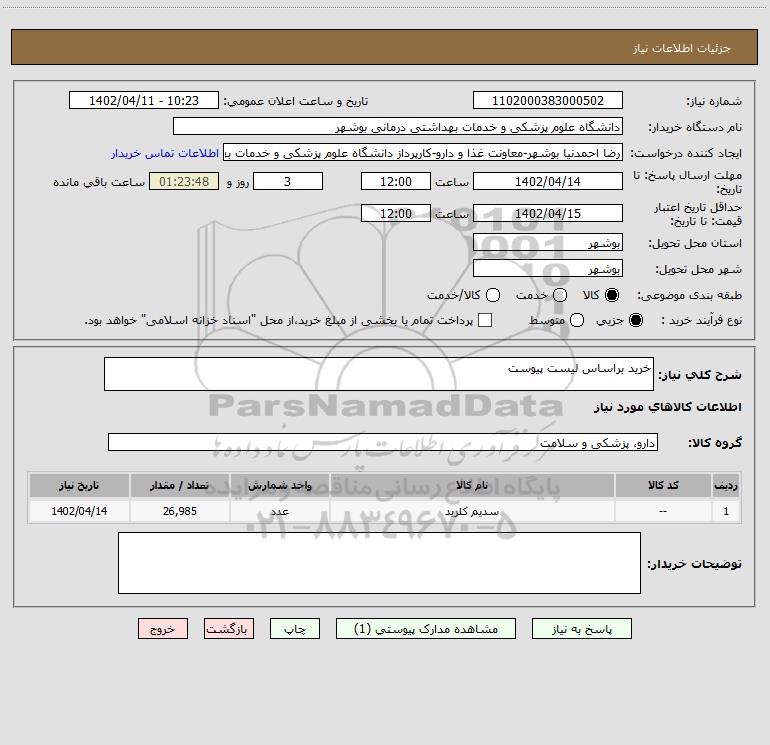 شرح کلی نیاز: خرید براساس لیست پیوست