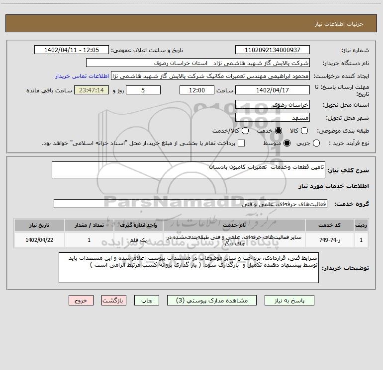 نام دستگاه خریدار:شرکت پالایش گاز شهید هاشمی نژاد استان خراسان رضوی