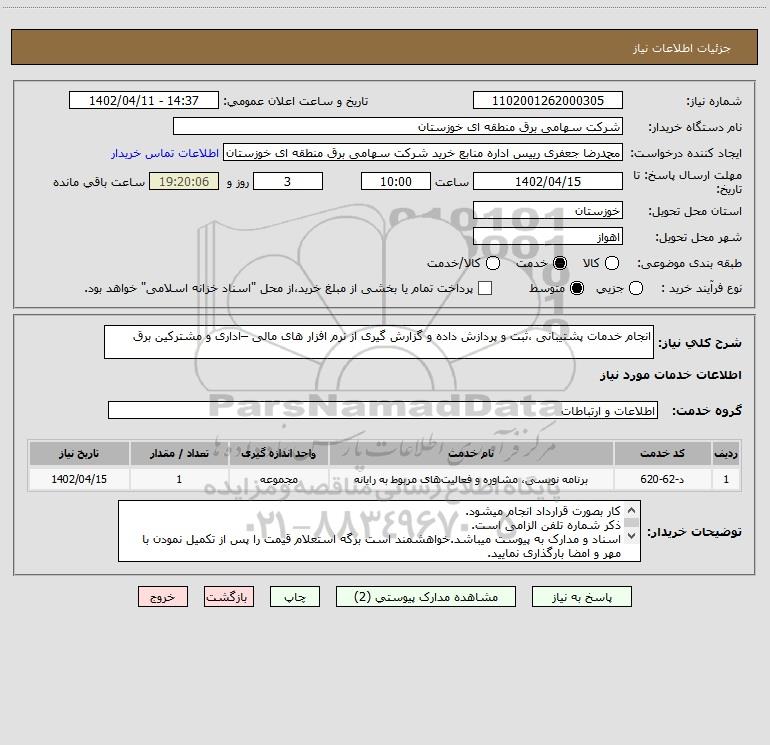 شرح کلی نیاز: انجام خدمات پشتیبانی ،ثبت و پردازش داده و گزارش گیری از نرم افزار های مالی –اداری و مشترکین برق
