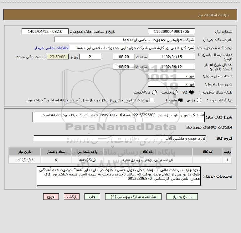 نام دستگاه خریدار:شرکت هواپیمایی جمهوری اسلامی ایران هما