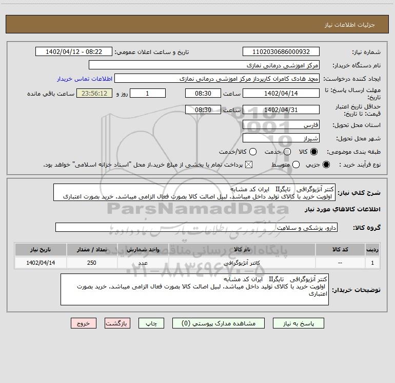 نام دستگاه خریدار:مرکز اموزشی درمانی نمازی