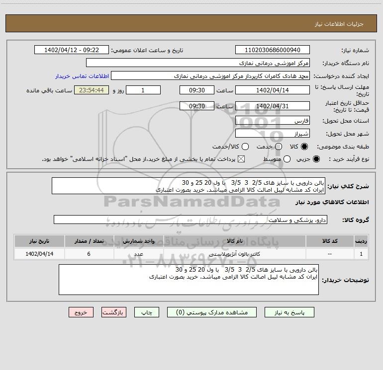 نام دستگاه خریدار:مرکز اموزشی درمانی نمازی