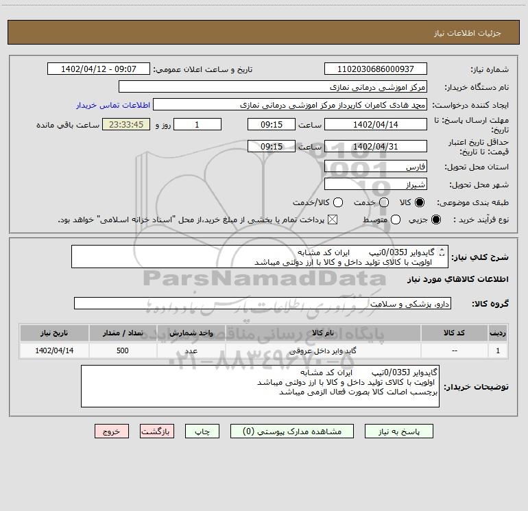 نام دستگاه خریدار:مرکز اموزشی درمانی نمازی