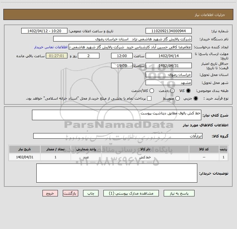 نام دستگاه خریدار:شرکت پالایش گاز شهید هاشمی نژاد استان خراسان رضوی