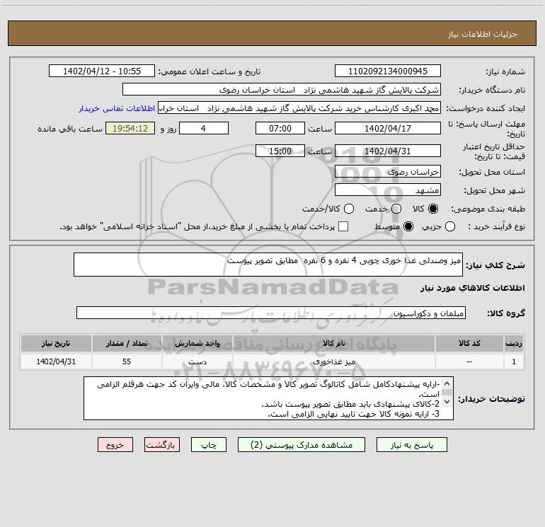 نام دستگاه خریدار:شرکت پالایش گاز شهید هاشمی نژاد استان خراسان رضوی