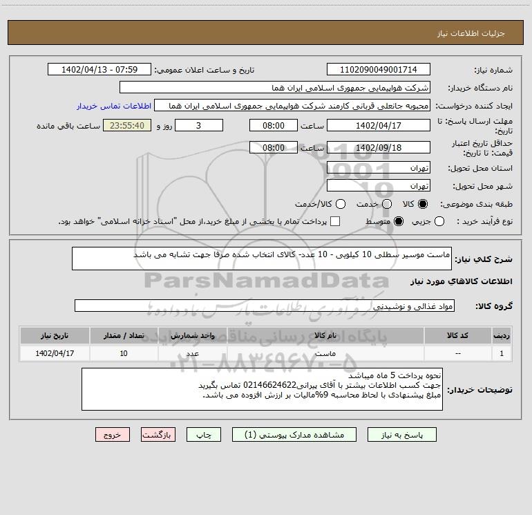 نام دستگاه خریدار:شرکت هواپیمایی جمهوری اسلامی ایران هما