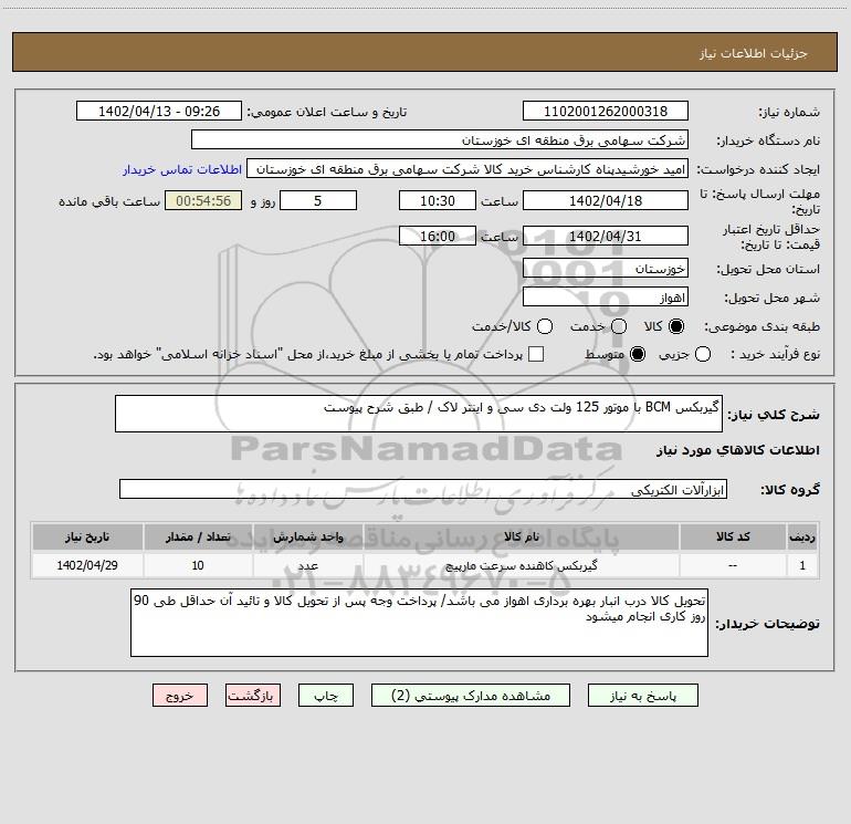 شرح کلی نیاز: گیربکس BCM با موتور 125 ولت دی سی و اینتر لاک / طبق شرح پیوست