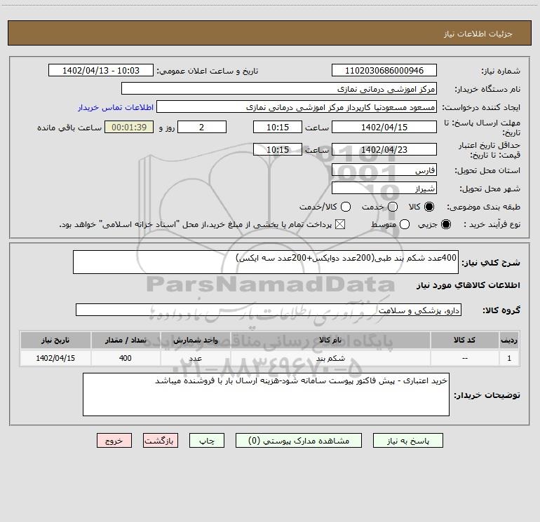 نام دستگاه خریدار:مرکز اموزشی درمانی نمازی