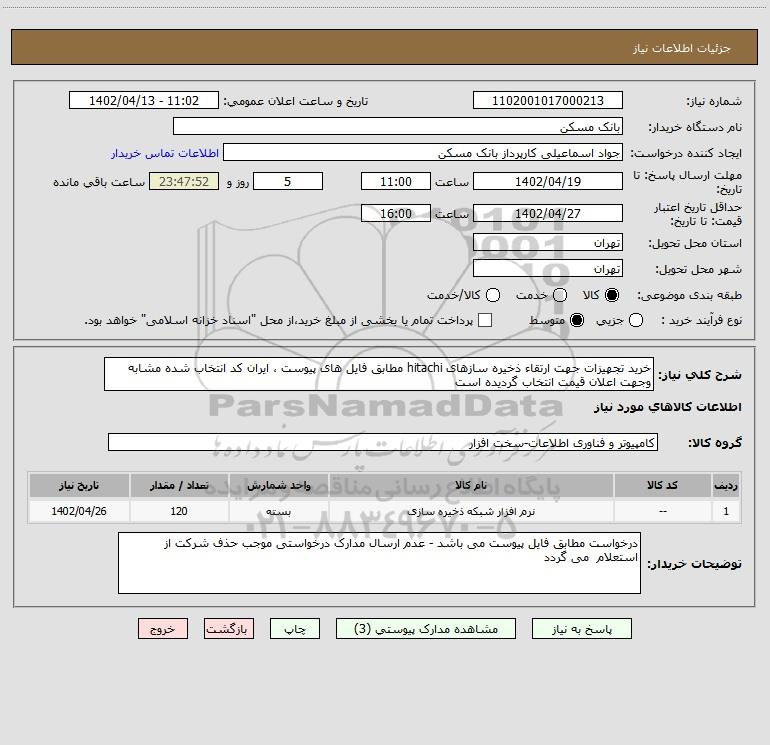 استعلام خرید تجهیزات جهت ارتقاء ذخیره سازهای hitachi مطابق فایل های پیوست ، ایران کد انتخاب شده مشابه وجهت اعلان قیمت انتخاب گردیده است, استعلام خرید تجهیزات جهت ارتقاء ذخیره سازهای hitachi مطابق فایل های پیوست ، ایران کد انتخاب شده مشابه وجهت اعلان قیمت انتخاب گردیده است