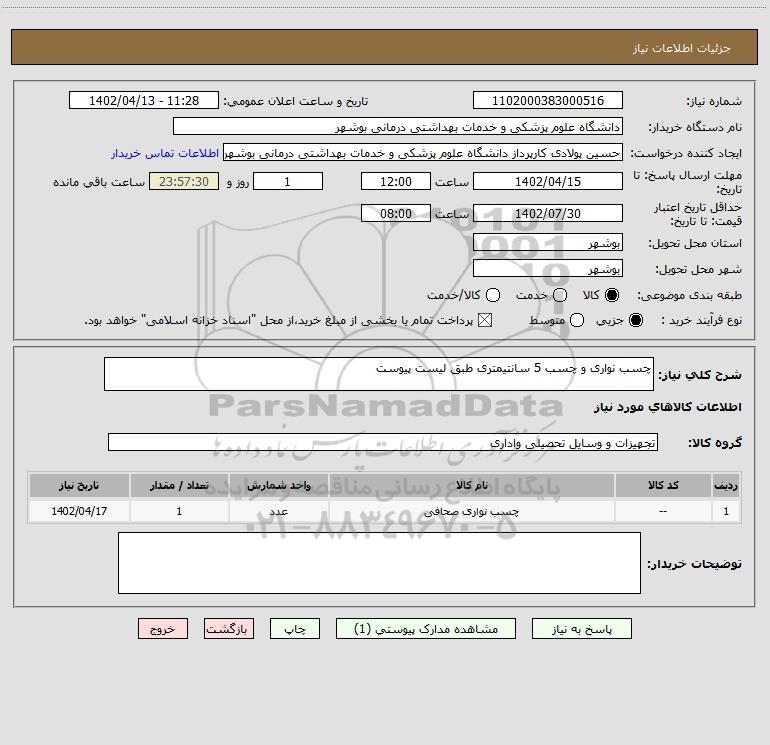 شرح کلی نیاز: چسب نواری و چسب 5 سانتیمتری طبق لیست پیوست