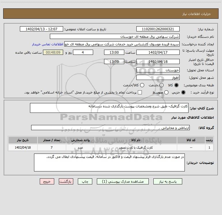 نام دستگاه خریدار:شرکت سهامی برق منطقه ای خوزستان