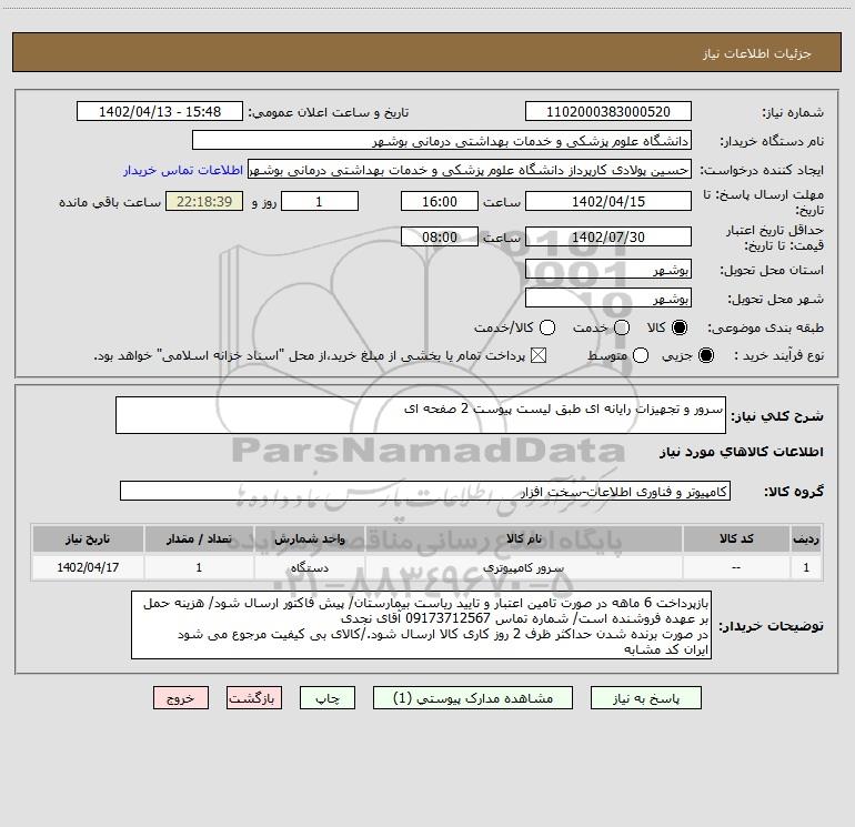 شرح کلی نیاز: سرور و تجهیزات رایانه ای طبق لیست پیوست 2 صفحه ای