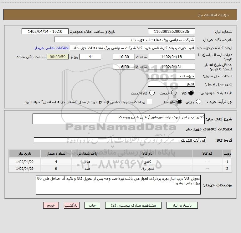 شرح کلی نیاز: کنتور تپ چنجر جهت ترانسفورماتور / طبق شرح پیوست