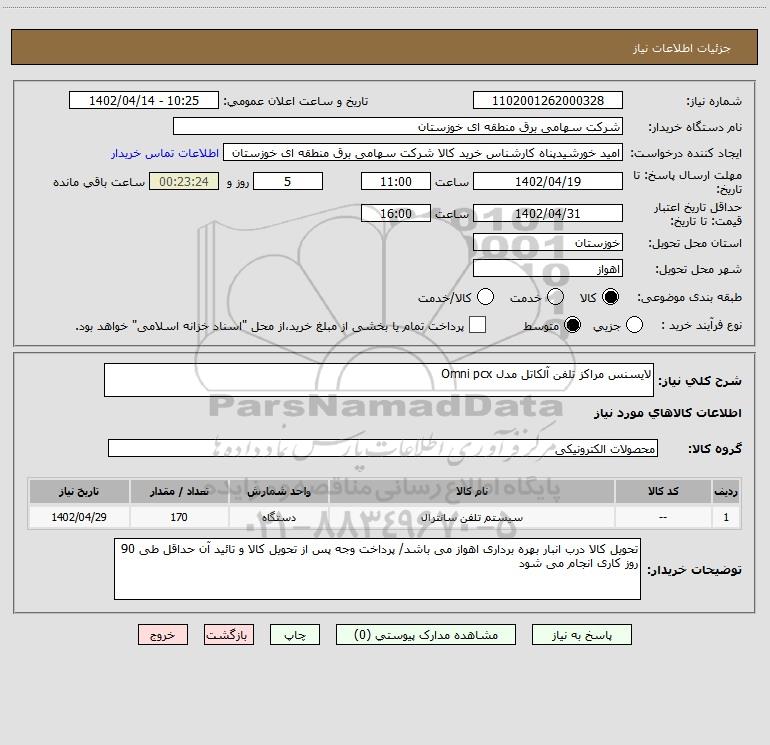 نام دستگاه خریدار:شرکت سهامی برق منطقه ای خوزستان