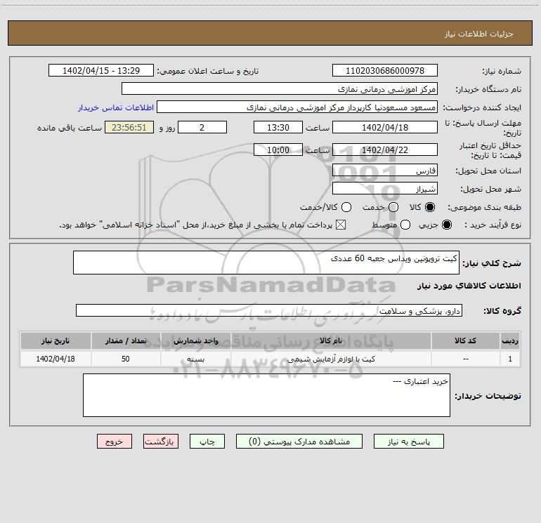 نام دستگاه خریدار:مرکز اموزشی درمانی نمازی