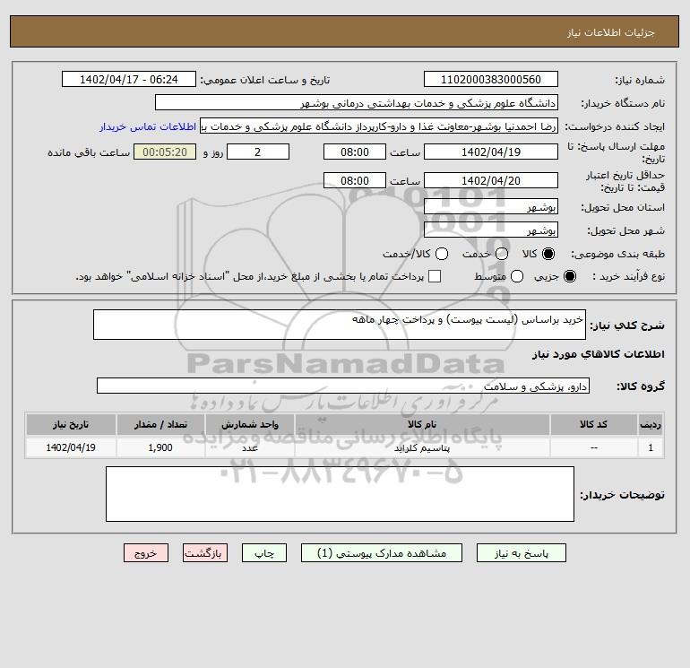 استعلام خرید براساس (لیست پیوست) و پرداخت چهار ماهه, استعلام خرید براساس (لیست پیوست) و پرداخت چهار ماهه