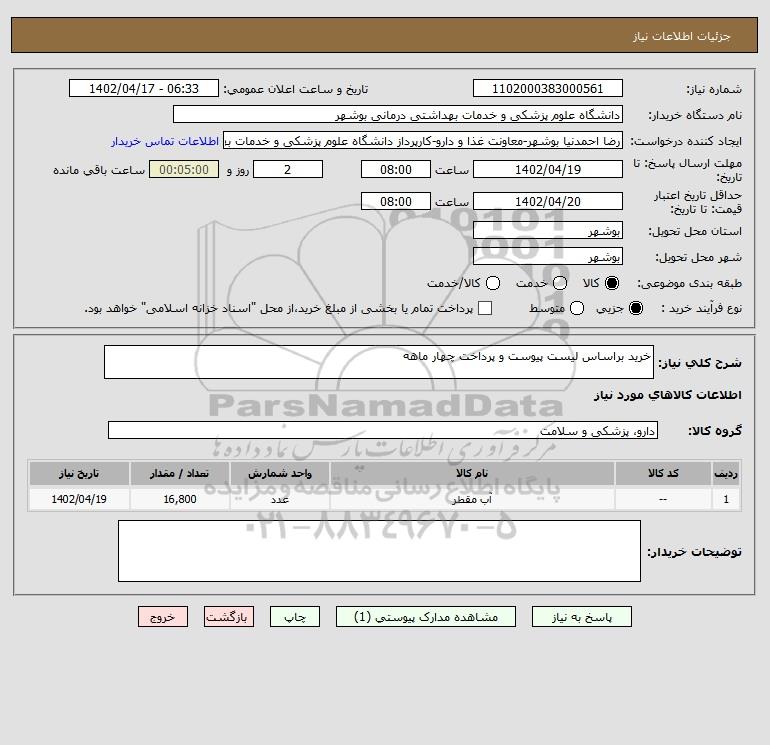 شرح کلی نیاز: خرید براساس لیست پیوست و پرداخت چهار ماهه
