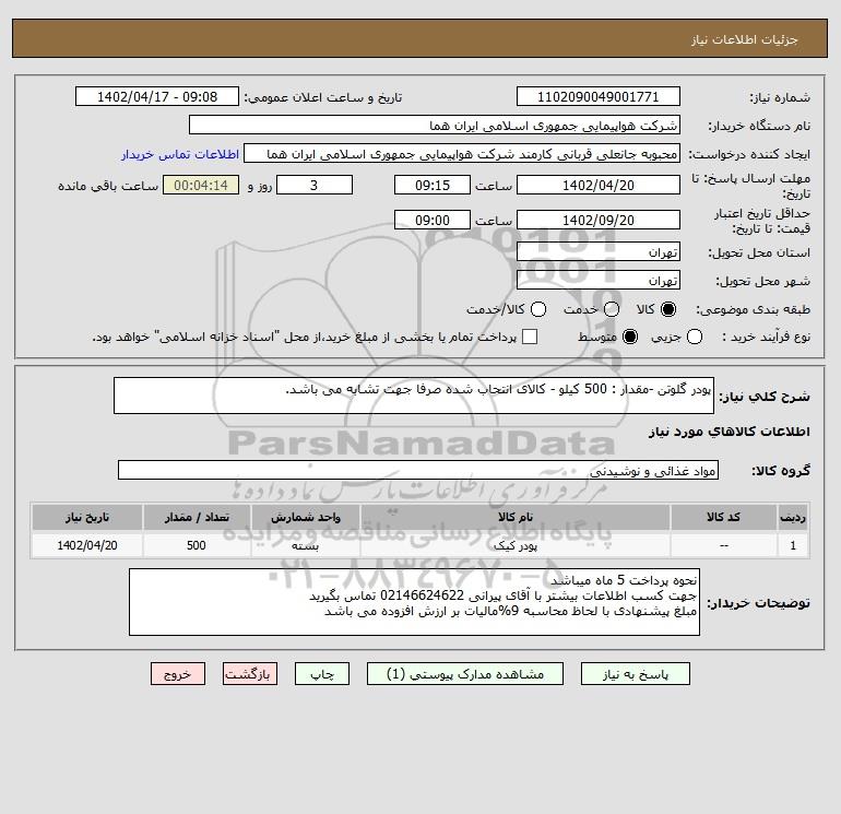 استعلام پودر گلوتن -مقدار : 500 کیلو - کالای انتحاب شده صرفا جهت تشابه می باشد., استعلام پودر گلوتن -مقدار : 500 کیلو - کالای انتحاب شده صرفا جهت تشابه می باشد.