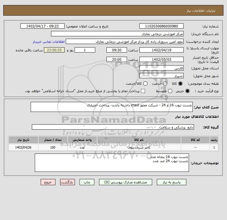 شرح کلی نیاز: چست تیوب 16 و 24 - شرکت مجوز imed داشته باشد- پرداخت اعتباری