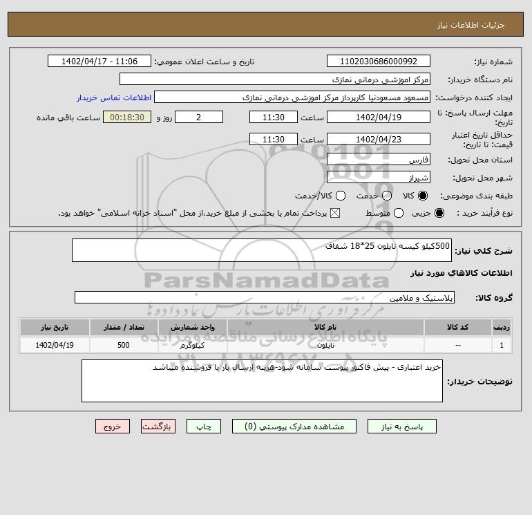 شرح کلی نیاز: 500کیلو کیسه نایلون 25*18 شفاف