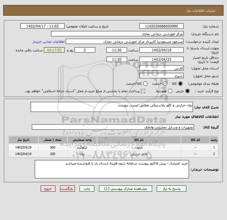 نام دستگاه خریدار:مرکز اموزشی درمانی نمازی